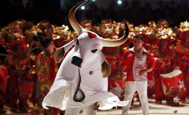 O Boi Garantido comemora a renovação do patrocínio do Bradesco, que há 24 anos caminha